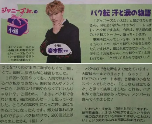 なんとも男気あふれる言葉ですよね。この言葉に背中を押されて、岩本照さんもバク転を習得しました。そして今では、Snow Manのパフォーマンスの中でアクロバティックな動きが大きな武器になっています。